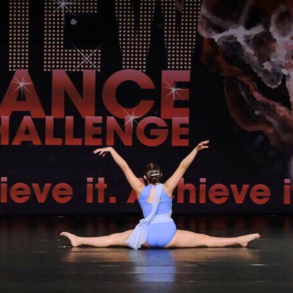 Custom designed by On the Dance Floor, this soft blue sleeveless leotard features an asymmetrical mesh wrap that crisscrosses across the front and drapes around the waist. Subtle rhinestone embellishments and a gathered flower accent add sparkle and texture. The keyhole back offers a clean, open silhouette, balanced by the soft flow of the sheer sash.