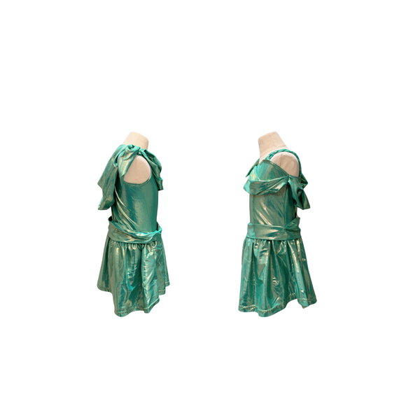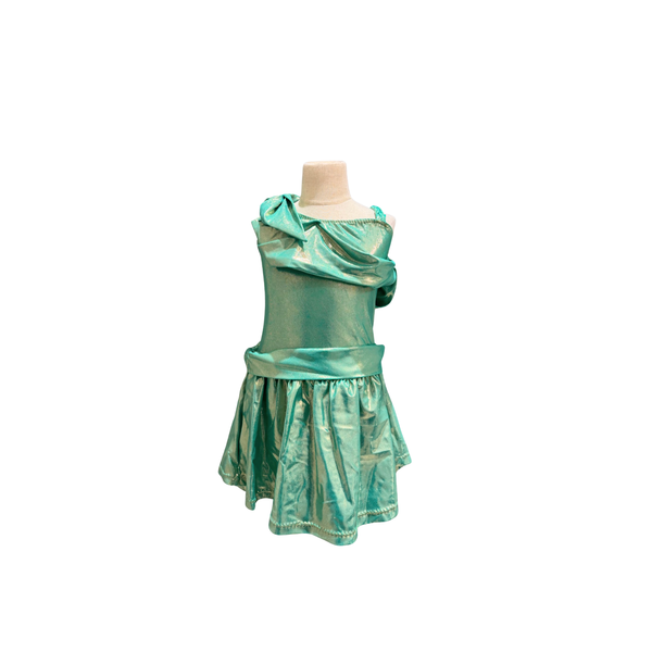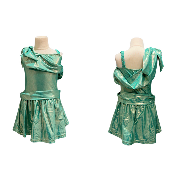 Custom made metallic, bright green dress with built in shorts. Lady Liberty inspired costume. Quantities and approximate sizes available: ~ Child Medium (1).