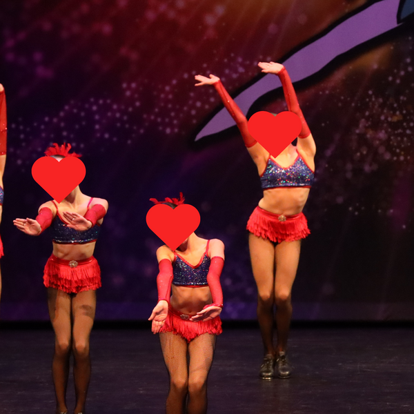Bring bold energy to the stage with this vibrant two-piece jazz costume, custom made by On the Dance Floor Designs! Featuring a shimmering blue sequin crop top, layered pink fringe skirt, and matching mesh sparkly gloves, this set is perfect for jazz, tap, or musical theatre routines. Finished with playful accessories like a red feather hairpiece, it’s an eye-catching choice for any performance.