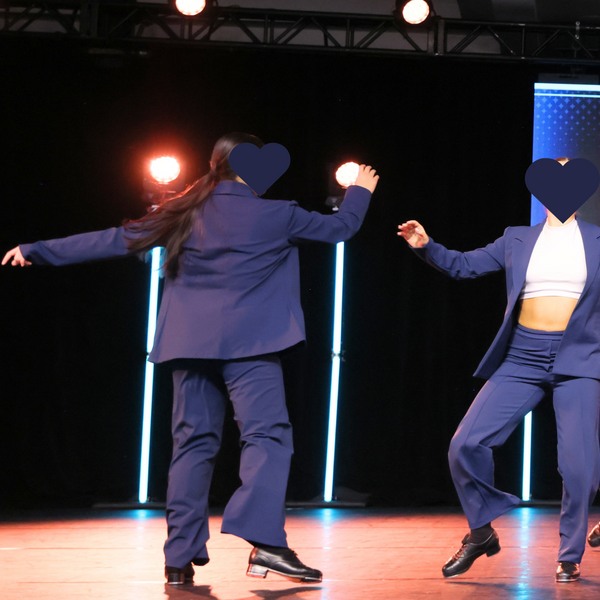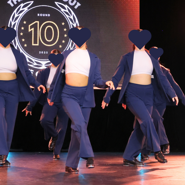 Command attention in this fierce navy-blue two-piece costume, custom made by On the Dance Floor (OTDF) boutique. Featuring structured high-waisted pants and a sleek open blazer, this set brings a crisp, contemporary edge to the stage. A clean white crop top adds contrast and attitude, while allowing full freedom of movement. Perfect for tap, jazz, or character routines that demand sharp style and synchronized sophistication.