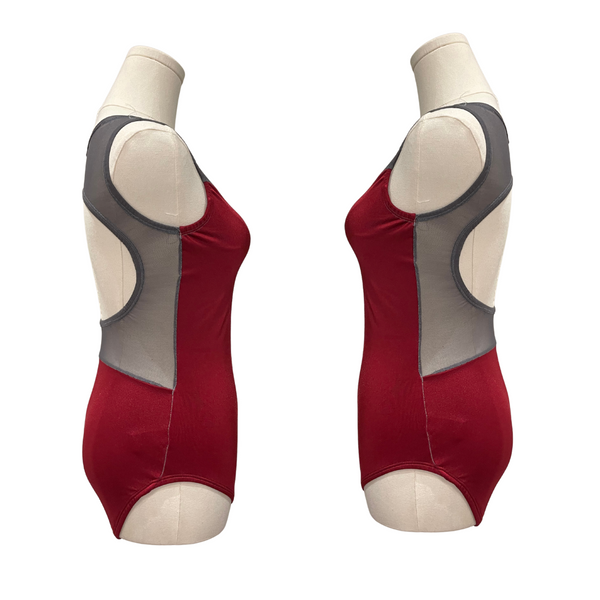 Costume by Second Skin Dancewear: Red and grey mesh bodysuit.Quantities and sizes available: ~ Adult Small (1).Quality rating: 5/5 - In great condition and professionally cleaned.