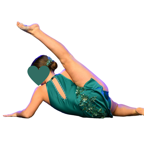 Custom made gorgeous green mini dress with bodysuit attached. Beautiful appliqué, rhinestone and ruffle work with the fabric. Definitely one of a kind.