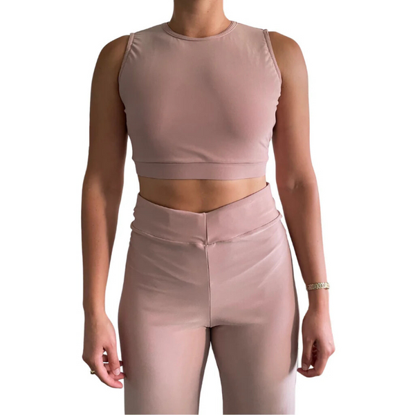 Beautiful, custom made pale pink / almost pinkish grey top and pants set by Effie Mathews. Fabric is super soft, stretchy, comfortable and very easy to dance in.
