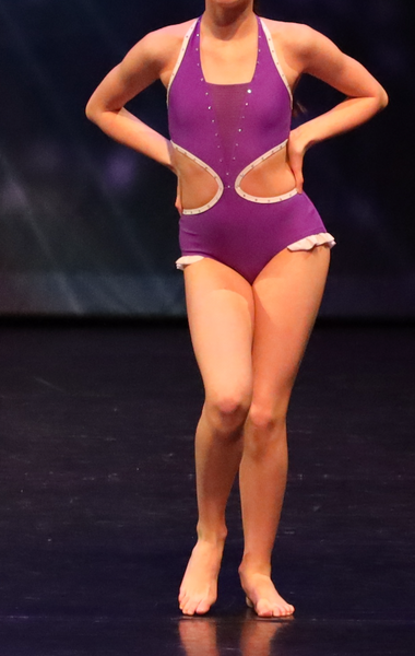 Stand out in style with this vibrant custom dance costume by On the Dance Floor Designs, designed for impact on stage. Featuring chic side cutouts, sparkling rhinestone accents, and a flattering halter neckline, and strappy details at the back. Custom made for performance, it’s a striking choice for dancers who want bold colour and sleek design.